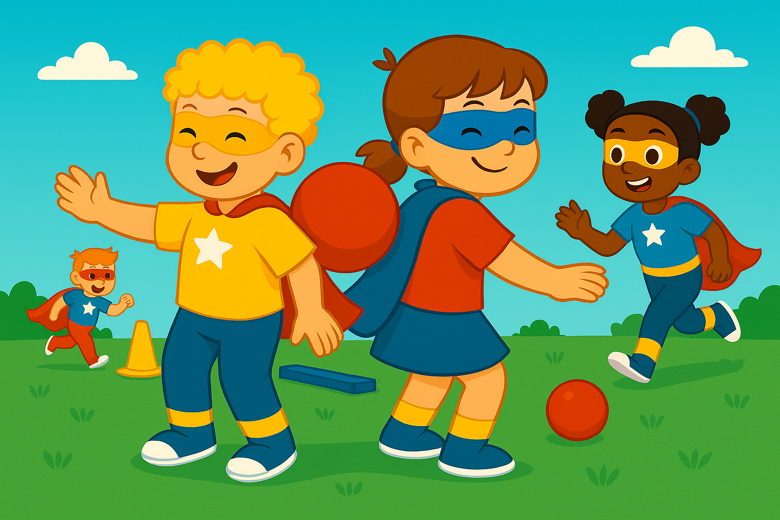 Der Helden-Kids Kurs richtet sich an Kinder von 5 bis 7 Jahren, die ihre motorischen Fähigkeiten spielerisch erweitern und erste Ball- und Teamspiele kennenlernen möchten.